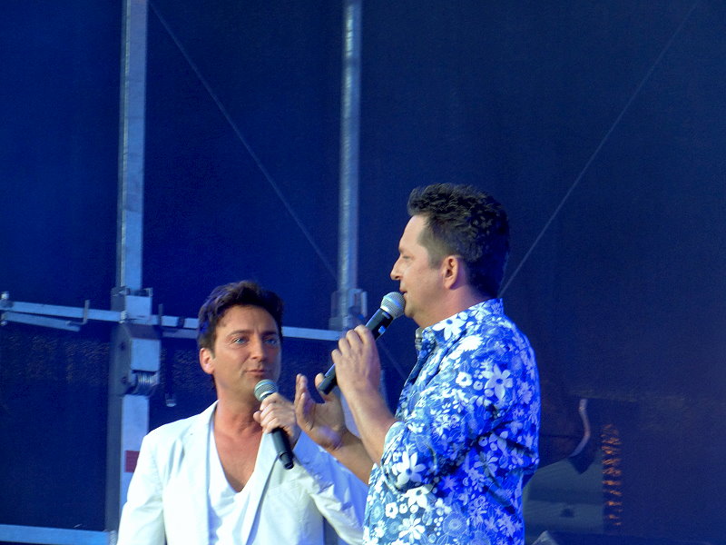 Und dann war es endlich soweit. Fredi und Martin alias Fantasy stürmten die Bühne, wie immer mit einer breit gemischten Songauswahl. Es gab Lieder der letzten CD, ältere und alte Lieder und die ganz großen Hits. Und ein Medley aus beliebten Flippers-Songs, das ich allerdings nicht passend fand, viele andere allerdings mochten. Natürlich durften auch dieses Mal die Jokes und Tanzeinlagen nicht fehlen.
