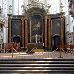 Danach ging es einmal an der Baustelle vorbei durch die kleine Grünanlage, kurz mal drüber nachdenken, was uns das folgende Schilderchaos sagen will, und dann ab zu den Wasserkaskaden, Neptunbrunnen und Marienkirche.