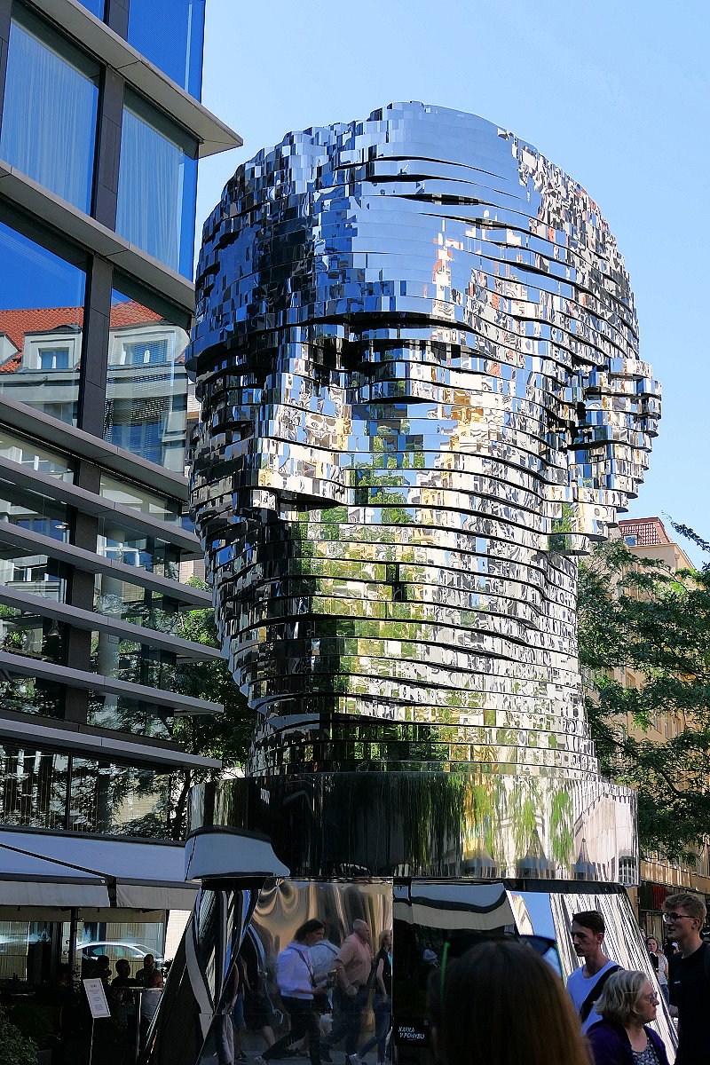 Wir bogen dann ab vom Fluss weg Richtung Bahnhof. Unser nächstes Ziel war dann nämlich der Franz-Kafka-Kopf, eine monumentale bewegliche Skulptur vom Kopf des tschechischen Schriftstellers.